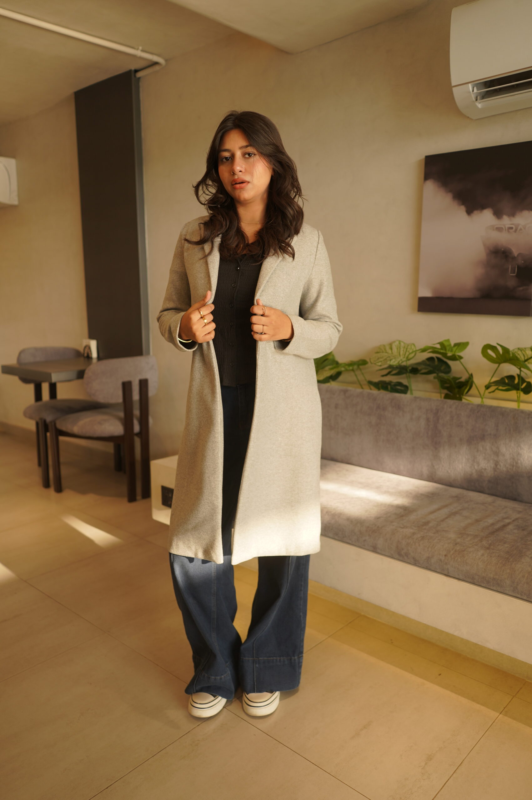 ROSIEYA (GREY) Essential Lapel Collar Coat By ZRA